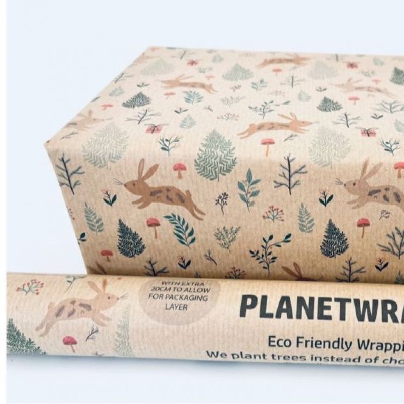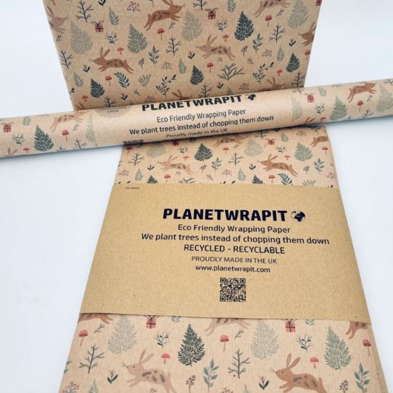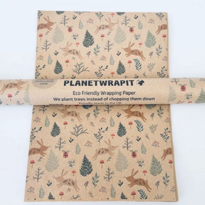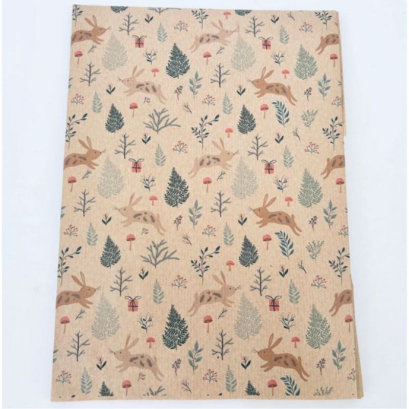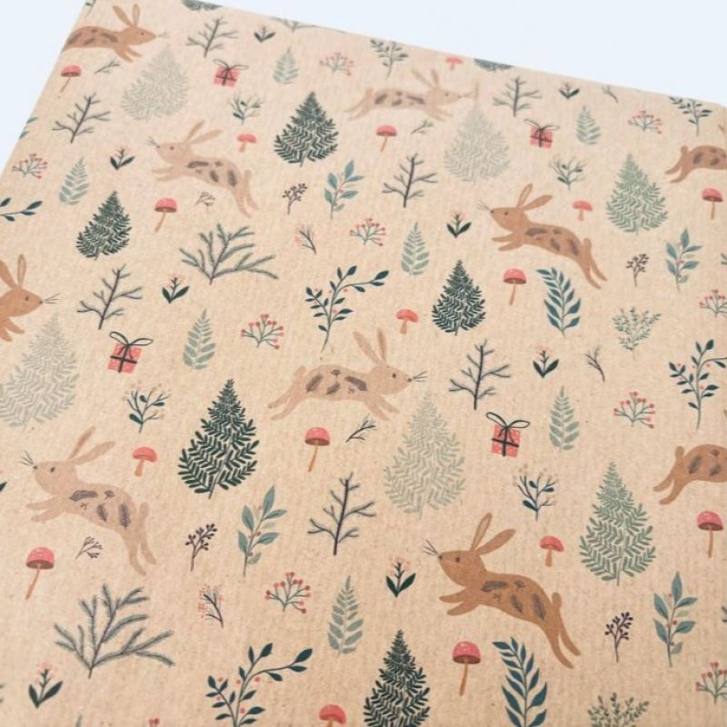 This pretty Christmas Bunnies wrapping paper is printed using toxin free water based inks on recycled kraft wrapping paper.