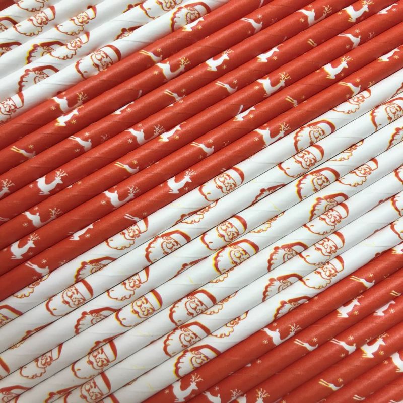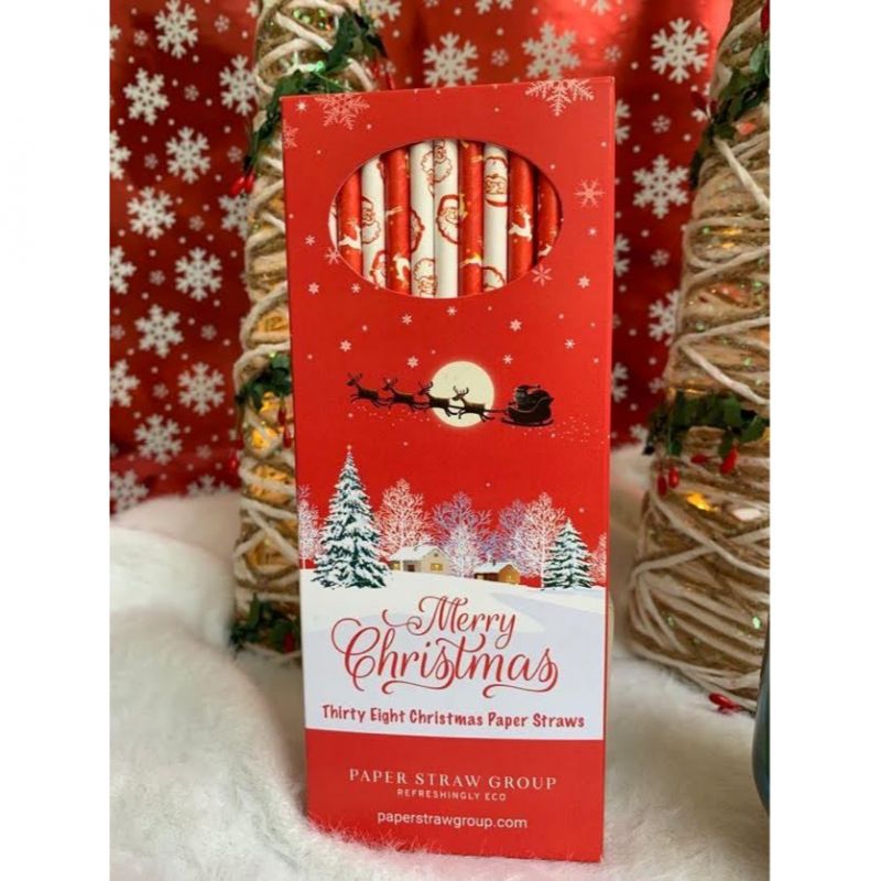 Box of 38 festive Christmas paper drinking straws in mixed designs of Santa and Reindeers in a coordinating Christmas box. Bring some fun and cheer to your Christmas table and drinks or why not give them as gift or add them to a stocking filler.