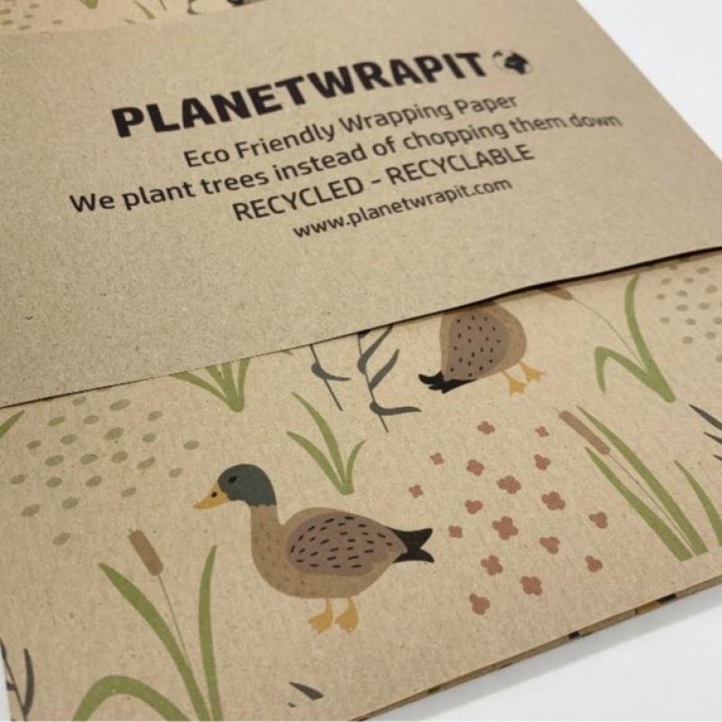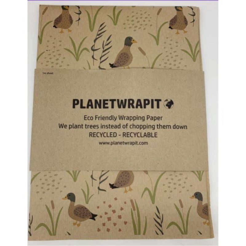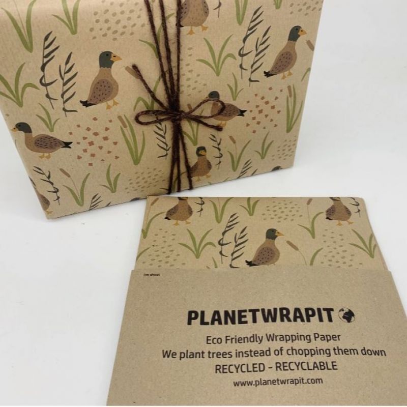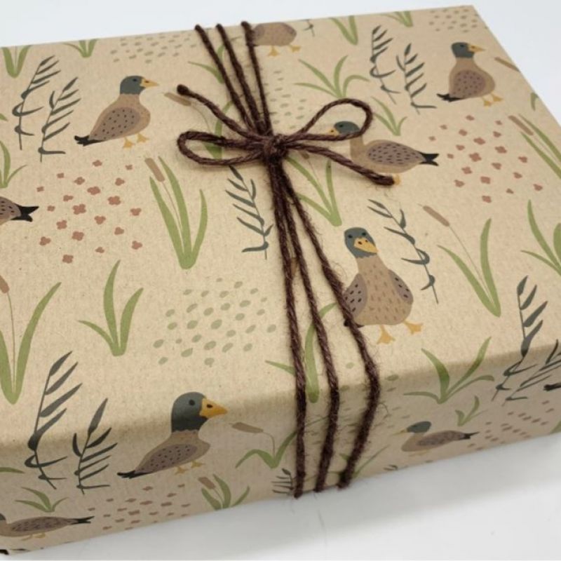 A delightful duck print using coloured ink on natural, recycled kraft wrapping paper.