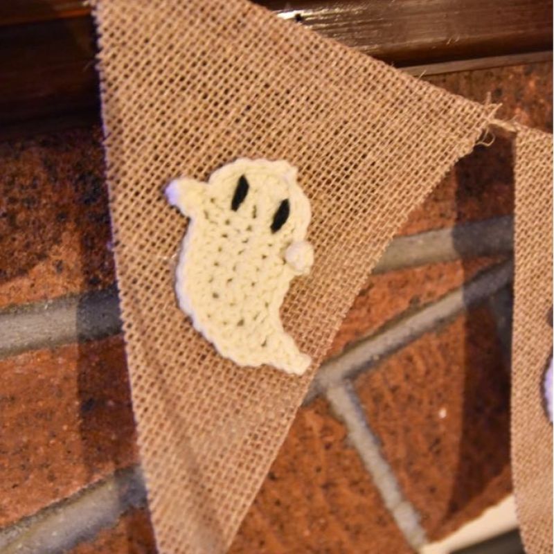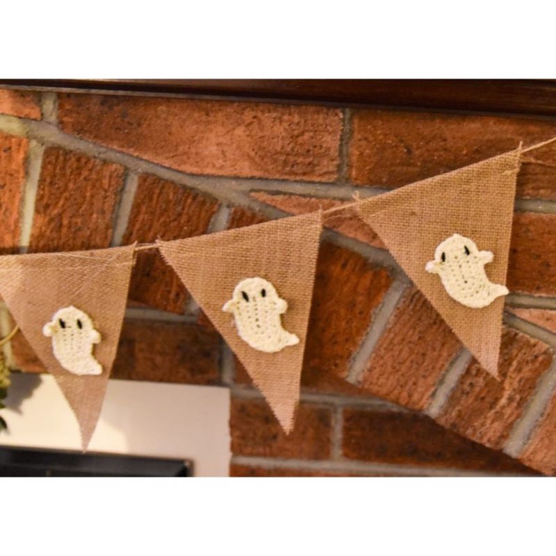 Beautiful hand crocheted ghost butting. These cute little ghosts are made with 100% cotton yarn so completely sustainable and plastic free. Bunting has 8 flags and is 2.5’m long
