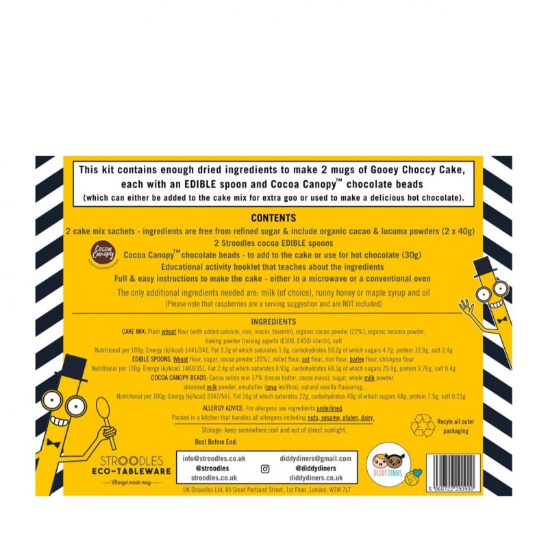 This kit contains delicious cake mixes that are free from refined sugar and made using high quality ingredients such as Peruvian lucuma and organic cacao powders. Children pour the mix into a mug and add a little milk (of choice), oil and honey, before cooking it for just 40 seconds in the microwave (or 9-11 mins in oven) and devouring it with a Stroodles edible cocoa spoon. A sachet of Cocoa Canopy chocolate beads is also included and can be added to the cake for extra goo, or used to make decadent hot chocolate on the side.