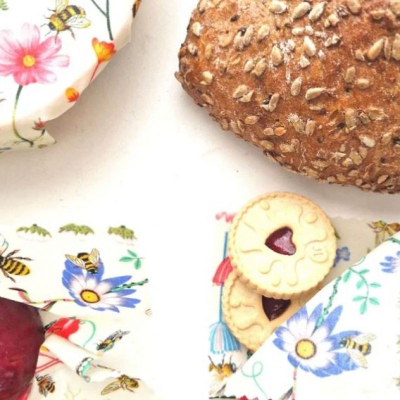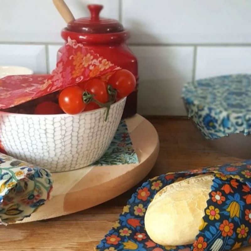 Handmade beeswax food wraps. Reusable, all-natural, nothing to throw away replacement for plastic wrap, foil, and resealable bags.
