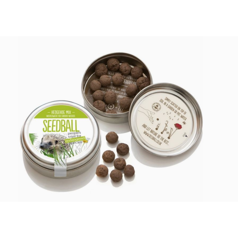 In looking for new products to add to our collection, we couldn’t resist these wonderful hedgehog mix seed ball tins. Each tin contains 20 seed balls, which is enough to cover 1 square metre in a garden bed or 3-5 medium sized pots. A wildflower patch is a super addition to creating a hedgehog friendly garden, not only in providing shelter but importantly to attract a whole range of tasty insects for hedgehogs to feed on.