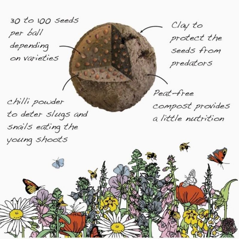 Each seed ball contains approximately 30 seeds from a mix of Yellow Rattle, Wild Carrot, Birdsfoot Trefoil, Tufted Vetch, Self Heal and Poppy. Best scattered in Spring or Autumn.