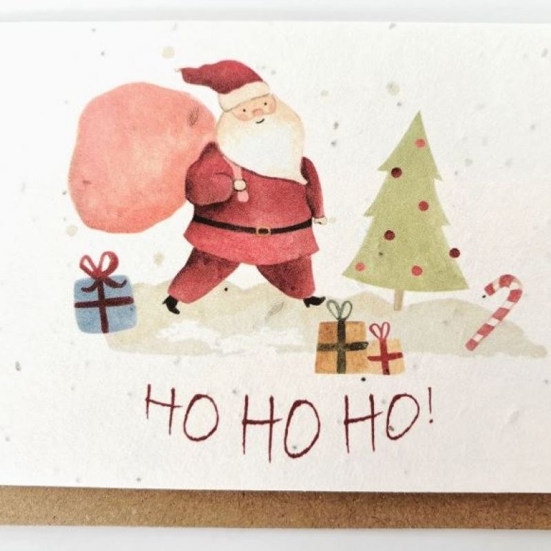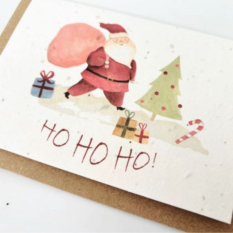 This fun A6 Christmas 'Ho Ho Ho' greetings card is embedded with wildflower seeds.