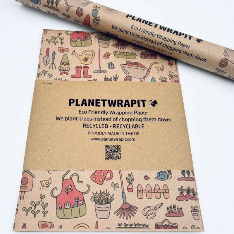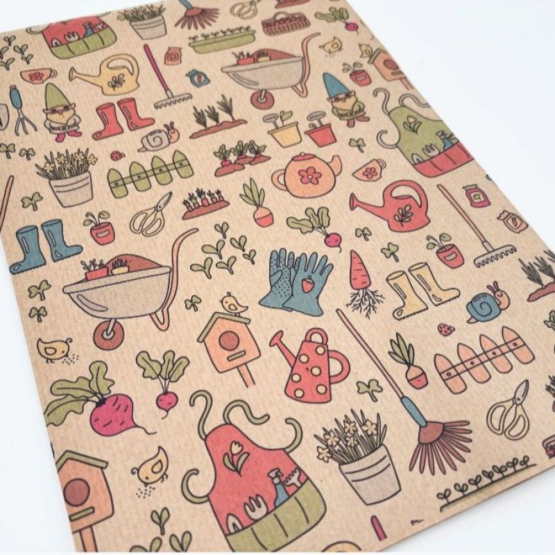 A multi-occasion Garden print on natural, recycled kraft wrapping paper.