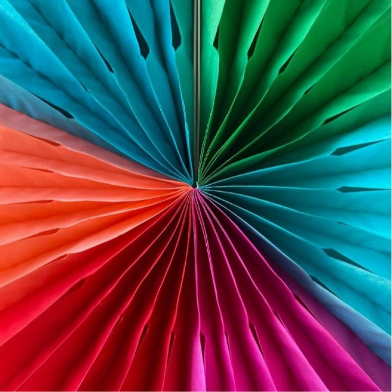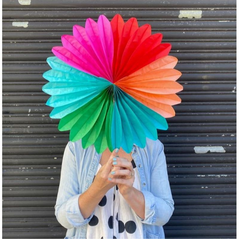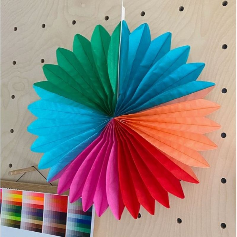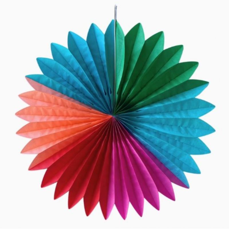 Eco-friendly multi-coloured paper fan decoration. Easy to hang up with the supplied thread, and can be re-used again and again. Perfect for all year round parties and celebrations.