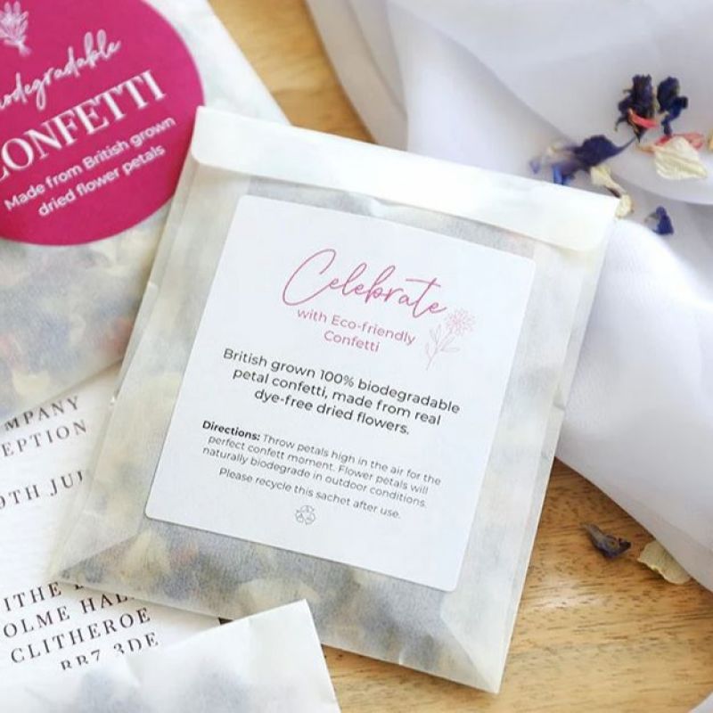All confetti is natural, 100% biodegradable, with no added dyes. Lovingly grown, picked, and dried on a family-run farm in the UK.