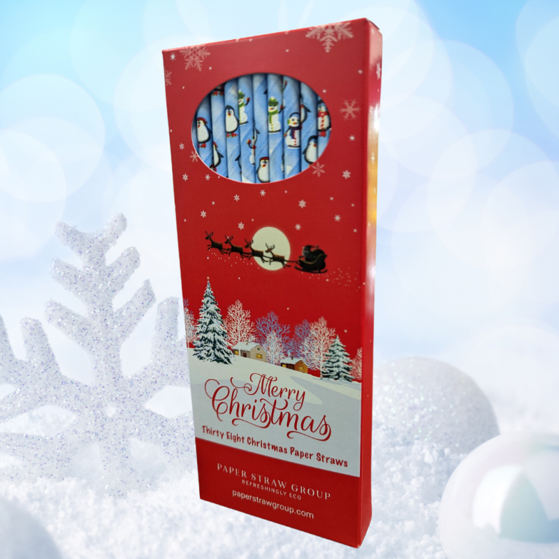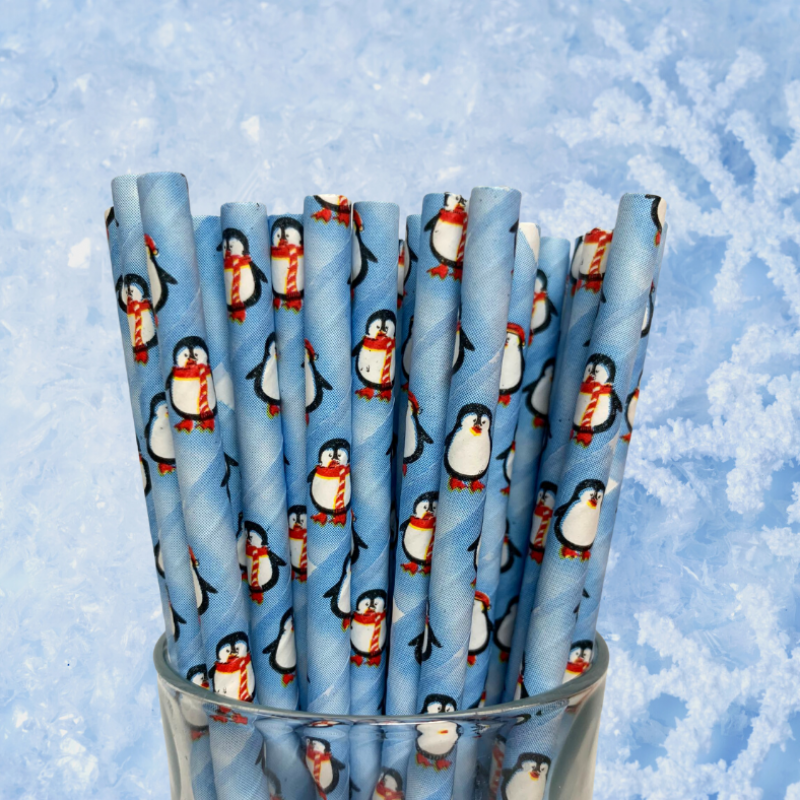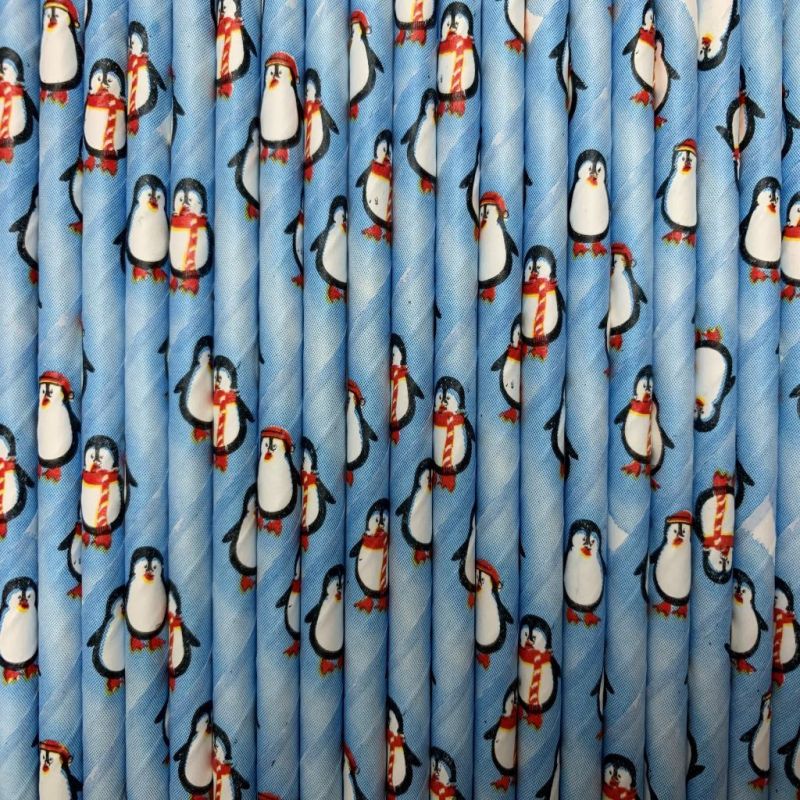 Box of 38 cute Penguin Christmas paper drinking straws a festive Christmas box. Bring some fun and cheer to your Christmas table and drinks or why not give them as gift or add them to a stocking filler.