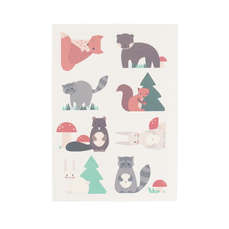 When the cutest racoon meets the coolest fox they invite the funniest owl and the sweetest bear for a party in the woods! These temporary tattoos feature 8 woodland animals ready to be cut out. Ideal as a party bag or stocking filler gift.